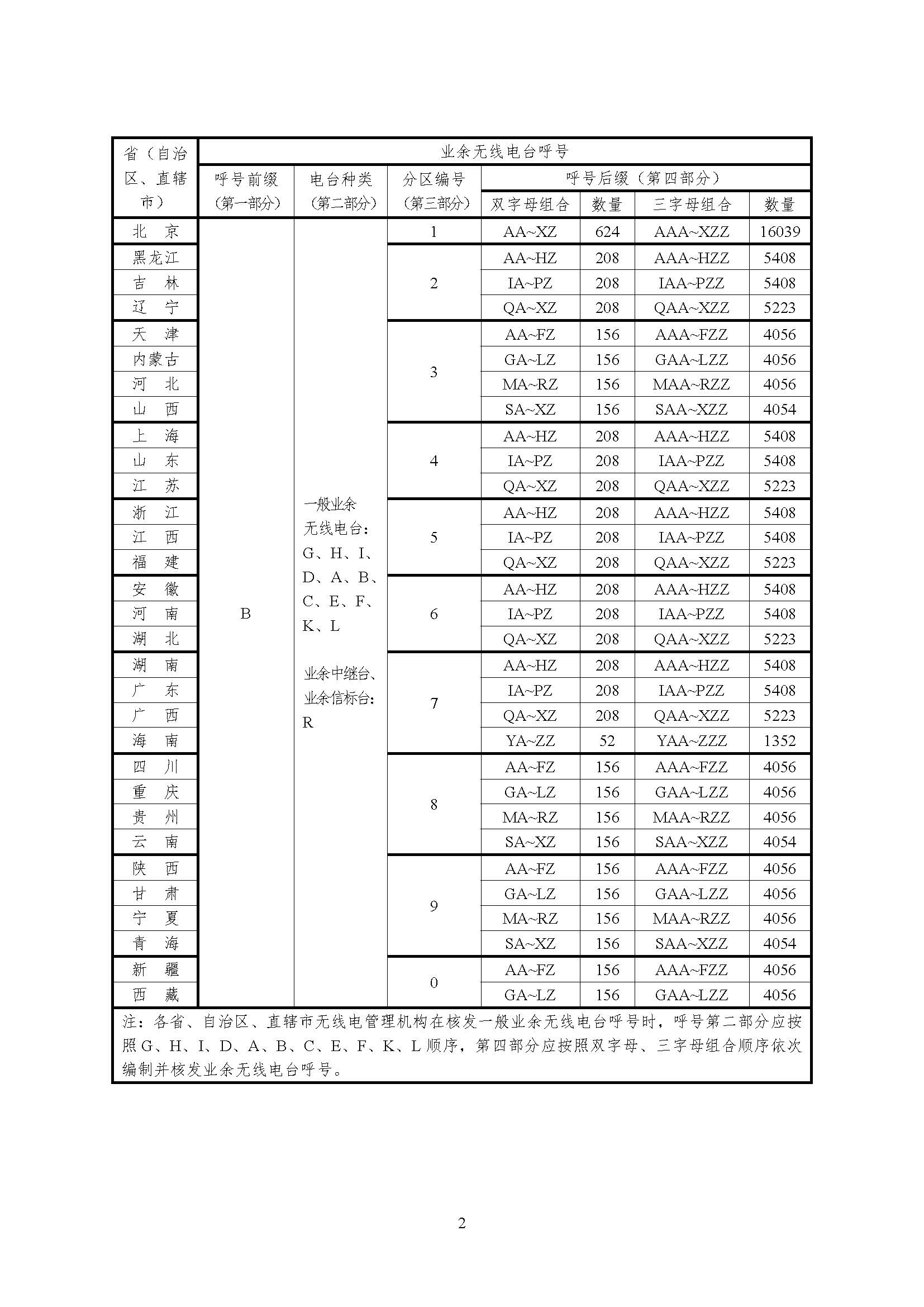 各省、自治区、直辖市无线电管理机构可以核发的业余无线电台呼号号段见下表。