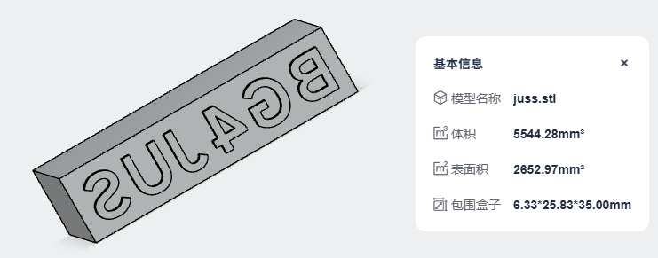 可通过嘉立创免费3D打印,收到打印实物后,可以使用嘉立创附带的砂纸轻轻打磨文字表面,去掉打印纹理,盖章效果更好看。